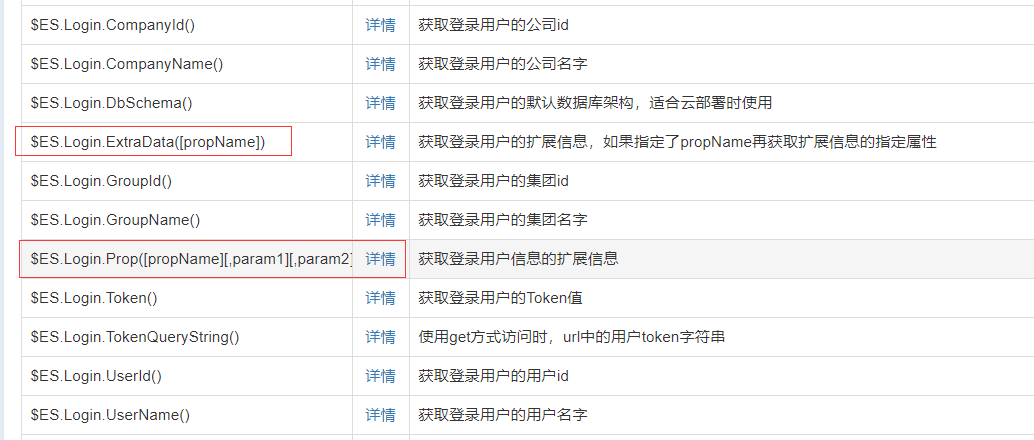 $ES.Login.Prop()是获取用户信息中平台定义好的不常用的。
